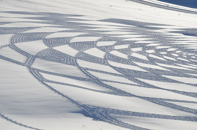 Simon Beck from Les Arcs, France works in snow as a graphic and performance artist.