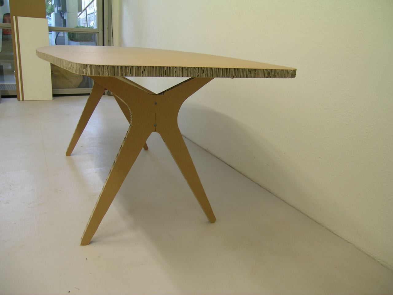 Addressing lifecycle costs, waste and ease of making concerns in the early design process helps with choosing the correct materials for the end product. Here lightweight easy to work SWAP board” is used to create a 1:1 model of the CP table with basic tools and hand cutting/forming. Very quickly the user experience and workability of the design could be evaluated.